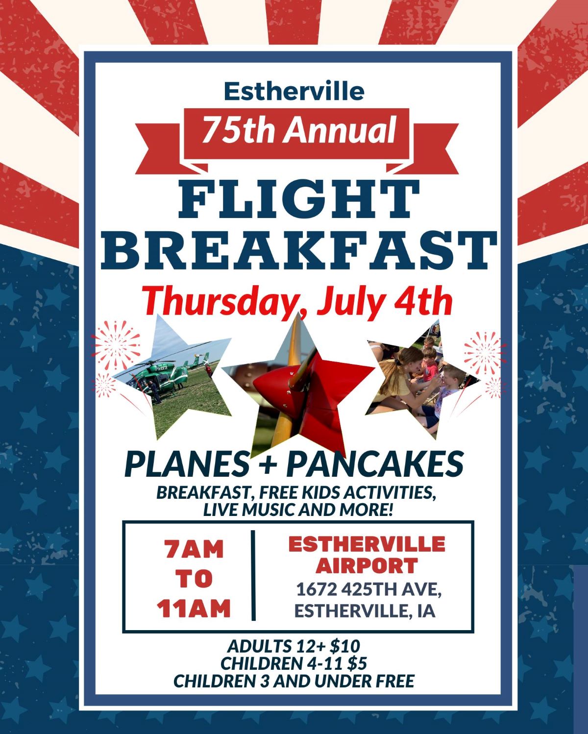 75th Annual Flight Breakfast to be held Rain or Shine July 4 at Estherville Airport