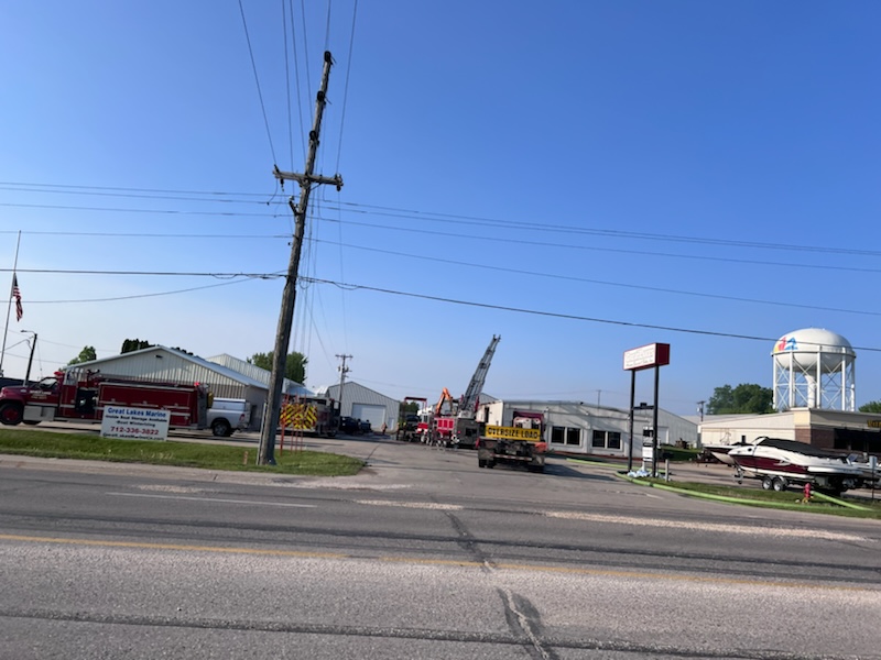 (Spirit Lake)– Firefighters remain on the scene of a fire this (Tues.) morning at Great Lakes Marine on Highways 9 and 71 in Spirit Lake. Spirit Lake Fire Chief Pat Daly tells KUOO news they were called to that location around 3:15 am…